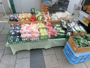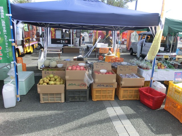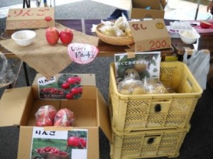 果物、りんご、なし、プルーン、メロン沢山の方に買っていただきました。