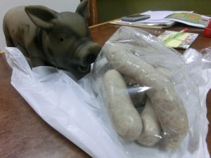 秋晴れの中で、ラフランスの収穫を体験しさんさんファームさんのこだわりの黒豚使用