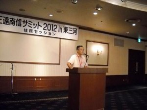 地域住民、大学、研究機関、経済界、行政が一堂に議論を深める。前半の住民セッションは、三遠南信住民ネットワーク協議会が